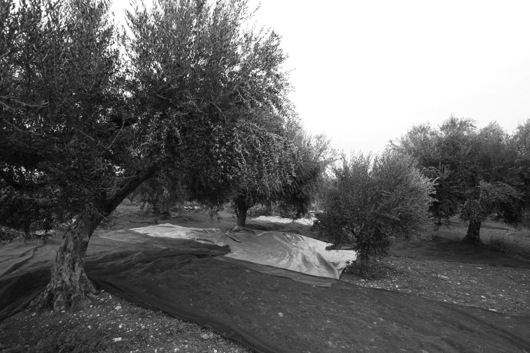 Στους ελαιώνες μας χρησιμοποιούμε φυσικό πότισμα γι’ αυτό και οι ελιές μας ονομάζονται ξερικές. Τα δέντρα μας κλαδεύονται εντατικά δύο φορές το χρόνο, μία στο μάζεμα του καρπού και μία μετά την άνοιξη. Το κλάδεμα είναι τέχνη. Κάθε δέντρο κλαδεύεται χωριστά, με προσοχή και σεβασμό στο σχήμα και την παραγωγική του ιστορία. Έτσι ώστε ο αέρας και ο ήλιος να φτάνουν στον καρπό. Η συγκομιδή γίνεται όπως παλιά. Σαν μια γιορτή κάτω από τα δέντρα. Μεγάλα παραλληλόγραμμα δίχτυα στρώνονται κάτω από τα γεμάτα λιόδεντρα, περιμένοντας τις ελιές να πέσουν απαλά επάνω τους,.